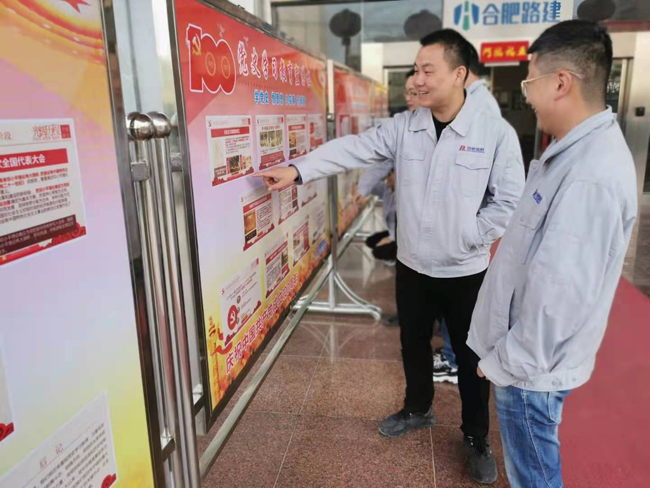 为热烈庆祝中国共产党成立100周年,推进党史学习教育深入人心,合肥路桥党支部精心谋划,在一楼大厅设专栏,打造“党的100周年光辉历程”宣传展板。