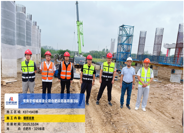 作为合肥“大外环”西环的重要组成部分,值此国庆、中秋“双节”同庆之际,淮桐高速公路3标项目建设现场,依然是一片繁忙而有序的景象。为确保项目关键节点顺利推进,保障节日期间施工安全与现场稳定,项目部全体值班人员毅然选择坚守岗位,用责任与担当诠释着别样的节日情怀。