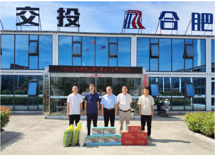 炎炎夏日、炽热红心。7月1日下午,在“七一”党的生日来临之际,合肥路桥党委书记、董事长杨枫带队下基层,为一线作业的员工们送清凉,为在高温天气下奋战的党员同志送关怀。 党建有引领,安全有保障。自6月中旬以来,合肥路桥党委党、工会组织开展了“夏日送清凉”系列慰问活动,为高温天气下奋战一线的广大员工送上清凉与关怀,为在项目一线的所有工作者加油打气。 七月是红色文化活动月,也是安全生产攻坚月,为切实做好项目安全生产,合肥路桥党委提前部署,认真梳理项目情况,组织采买绿豆、白糖、矿泉水等防暑降温物品,领导班子带队分赴项目一线走访慰问,据悉本次慰问涉及公司市内外10个重点在建项目。