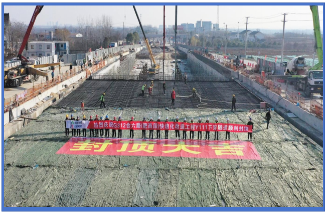 截止12月24日,合肥路桥G312合六路(肥西段)快速化改造项目Y111下穿隧道D11段顶板已浇筑完成,至此Y111下穿主体结构施工全部完成。