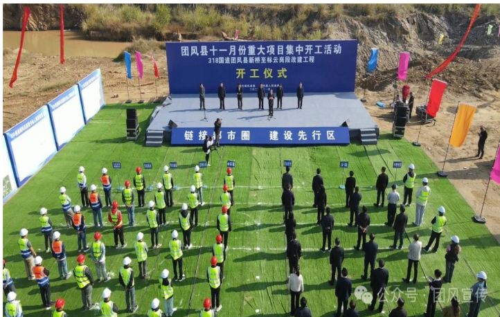 2024年11月1日,由合肥路桥承建的318国道团风县新桥至标云岗段改建工程举行开工仪式。团风县委副书记、县长胡凯,团风县交通运输局党组书记、局长刘丹、合肥路桥党委副书记、总经理丁中才出席开工仪式。