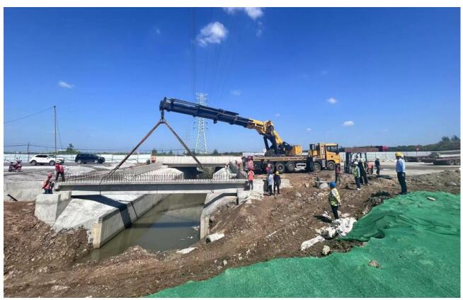 金九银十,黄金施工季,合肥路桥G312合六路(肥西段)快速化改造工程项目建设现场一派繁忙,高庄路上跨桥正紧锣密鼓地展开北半幅第二联箱梁模板安装、Y106下穿隧道D19节段U槽段正展开底板钢筋绑扎。截至发稿,马河湾桥最后一块混凝土预制梁板已精准安装到位,至此G312合六路(肥西段)快速化改造工程关键节点――马河湾桥预制梁板架设任务圆满告捷。
