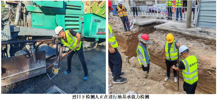 又一个40℃+的高温桑拿天,汗如雨注,迎着烈阳,有这样一群不服“暑”的同志们,他们或头顶烈日提着灌砂筒冲向压实的路面,一锤一锤的挥洒汗水,一勺一勺的收集着检测的信念;或站在泥泞的沟槽里把握着对大地的承载;或弯腰俯身守护着出行的基本,他们就是合肥路桥骏腾检测的同志们。
