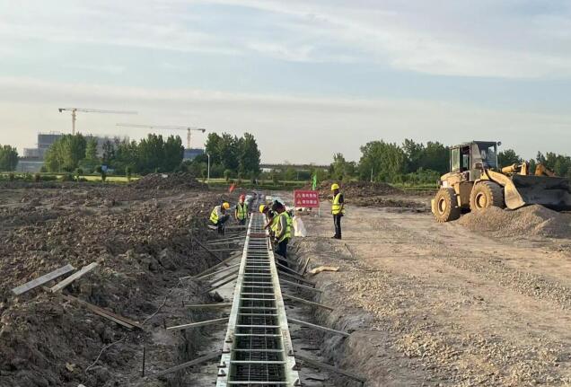 在虹达公司淮桐高速(合肥段)路基路面01标预制梁场施工现场,50余名工人分工协作,井然有序地忙碌着轨道梁、排水沟、钢筋加工场基础等施工。此外,该标段路基累计完成主线清表1.5km,完成K62+842分离式立交桥桩基8根。