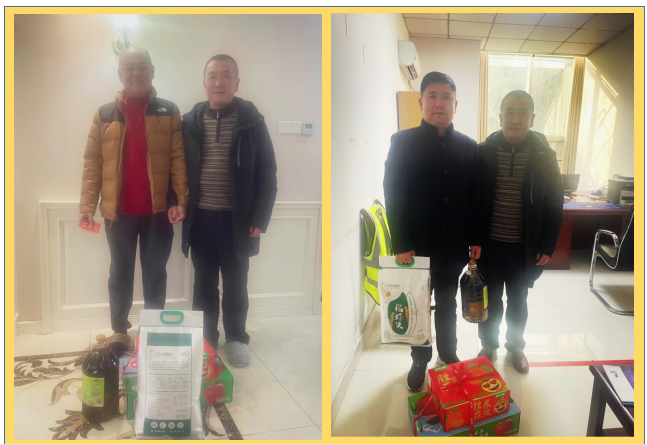 程勇带队逐户上门向老职工们致以诚挚问候和新春祝福,与他们促膝交谈,详细询问老同志们的身体和生活情况,认真听取他们对单位高质量发展的意见建议,对老同志曾经为单位做出的贡献表示崇高敬意和由衷的感谢,同时送去米、油、水果等慰问品。