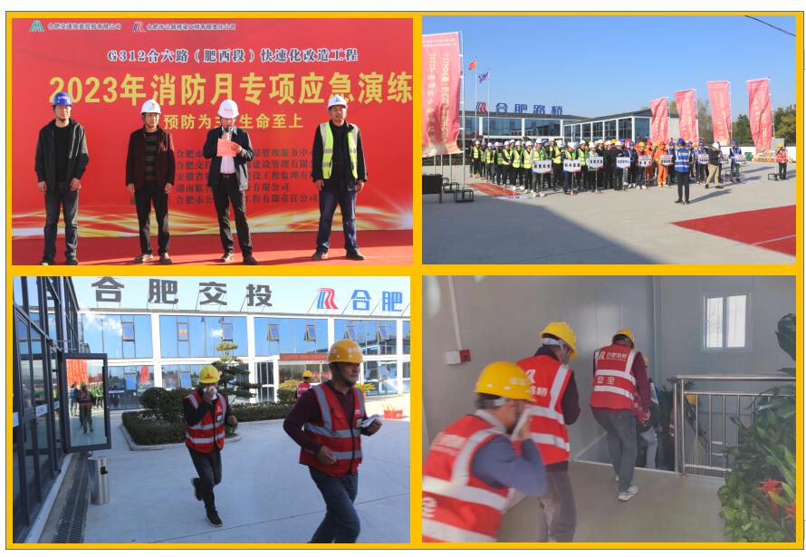为了进一步强化项目消防安全教育,提高员工安全防范意识,切实保障员工的生命及财产安全,11月20日下午,G312合六路(肥西段)快速化改造工程项目部、官亭消防救援站联合开展消防安全应急演练,并取得圆满成功。