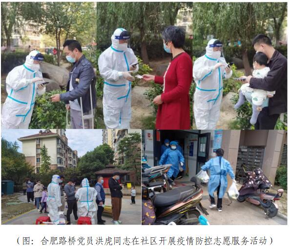 疫情考验初心,旗帜方显力量。疫情防控期间,合肥路桥党员同志们勇当社区疫情防控志愿服务“排头兵”,让党旗在抗“疫”一线高高飘扬。“已到岗”――10月23日7:00,合肥路桥党员洪虎同志在接到瑶海区琥珀社居委茗园临时党支部的通知后,30分钟到达指定防疫岗位。在过去的一周时间里,他当过封控小区“守门员”,积极协助防疫人员督促居民落实封控隔离要求;做过疫情防控“宣传员”,手持喇叭一遍一遍宣传疫情防控措施;当过核酸检测“服务员”,连续数个小时一个接一个登记每个人员核酸信息;做过生活物资“快递员”,披星戴月挨家挨户给居民发放生活物资......过去的一周时间里,他在多个身份之间不停转换,不分昼夜忙碌着,冲锋于疫情防控一线!