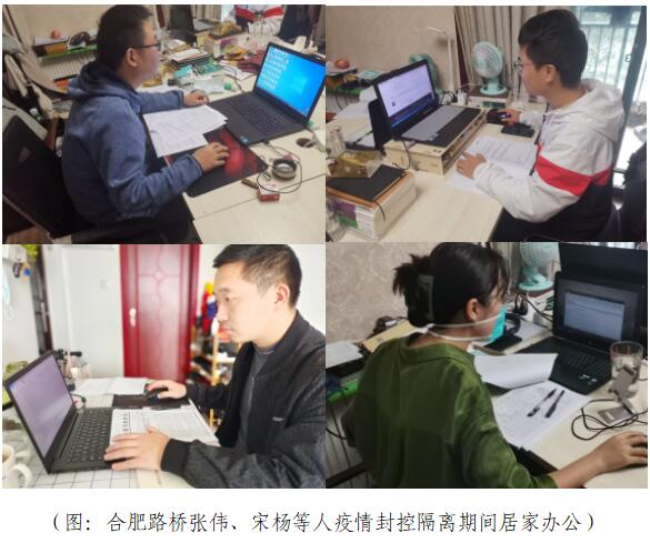 封控不停工,居家不脱岗。疫情封控期间,合肥路桥部分封控在家的同志们没有选择“躺平”,他们充分利用线上渠道开展工作,严格按照要求稳步推进各项工作正常开展,确保工作防疫两不误。