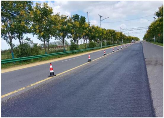 该项目分为五个路段,道路全长约40公里,涉及到长丰、肥东、庐江三个县区,点多面广。该项目采用沥青超薄罩面和使用冷拌冷铺磨耗层新材料新工艺,其中沥青超薄罩面采用ETO高粘弹超薄罩面,具有提升耐久性、不粘轮乳化沥青保证施工层间粘结质量、延缓反射裂缝发展周期等特点;冷拌冷铺磨耗层沥青胶结料采用交联型常温水性复合改性沥青,具有优良的抗高温变形能力、优良的抗低温应力及反射开裂能力、抗疲劳特性号、抗滑性能优良、行车噪音更小等特点。