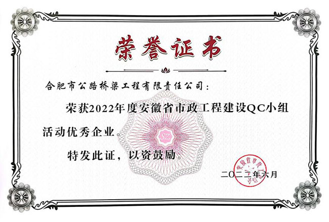 近日,从2022年度安徽省暨合肥市市政工程建设优秀QC小组活动成果发布会获悉,合肥路桥QC小组活动喜获诸多佳绩。
