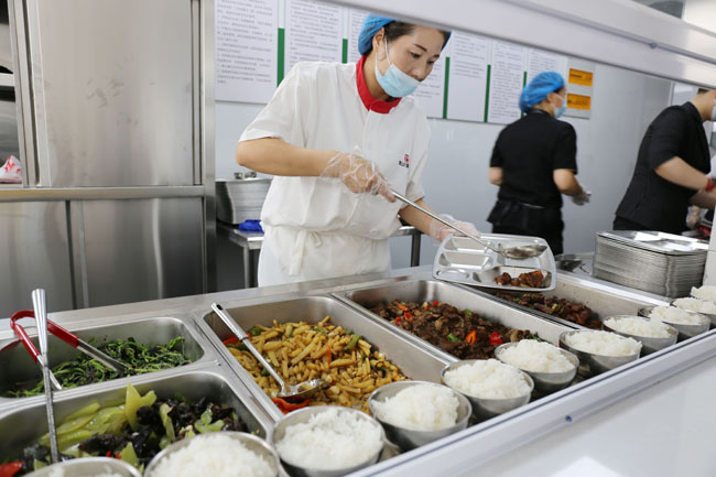装修一新的餐厅温馨整洁、宽敞明亮,厨房厨具干净卫生、各类设施齐全,可同时容纳100余人就餐,由合肥黄山大厦集团提供服务。餐厅为职工提供早、中两餐。菜品搭配科学、营养丰富,确保职工“吃的安全、吃的健康”。
