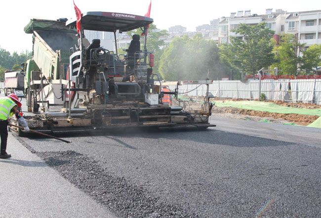 据项目负责人介绍,汤口路项目为城市主干路,项目终点连接著名的红色大道―延乔路,为喜迎“七一”,项目部积极调整施工计划,提前展开汤口路与延乔路交接段道路路面施工,确保“七一”道路通畅。