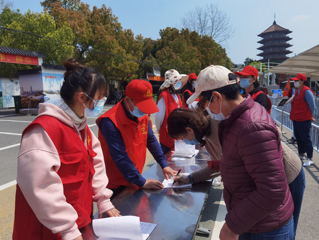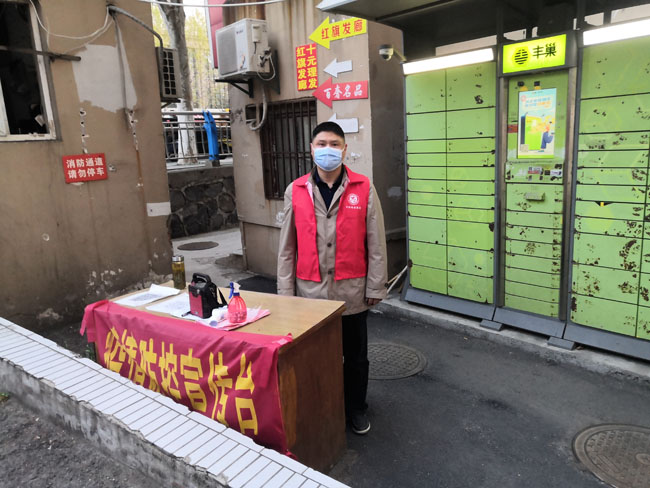 路桥的三位志愿者被分在不同的社区,从清明节第一天开始,三位党员同志分别带着公司准备的抗疫物资上岗了。4月3日,洪虎同志在瑶海区大兴塔陵防疫点,主要帮助60岁以上不会用智能手机的老年人办理登记测温工作,保障做好老年人祭祀绿色通道工作。
