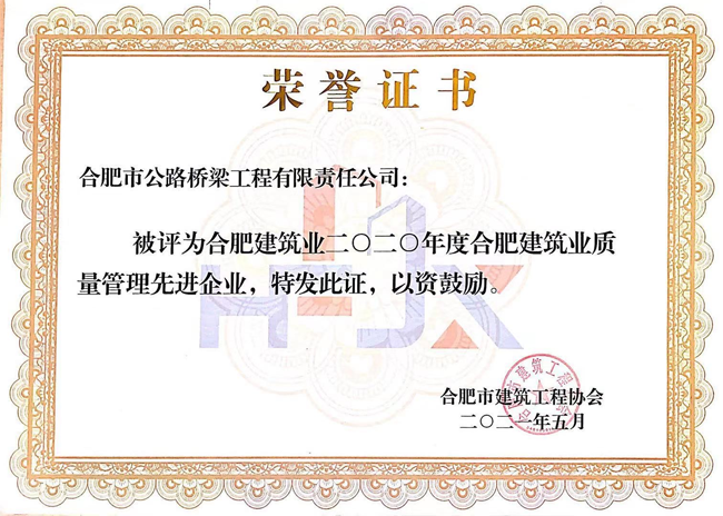 日前,从合肥市建筑业工程协会获悉,2020年度合肥市优秀企业、先进企业、优秀项目经理的评选结果已经出炉。合肥路桥被评为合肥建筑业2020年度优秀施工企业、2020年度质量管理先进企业。