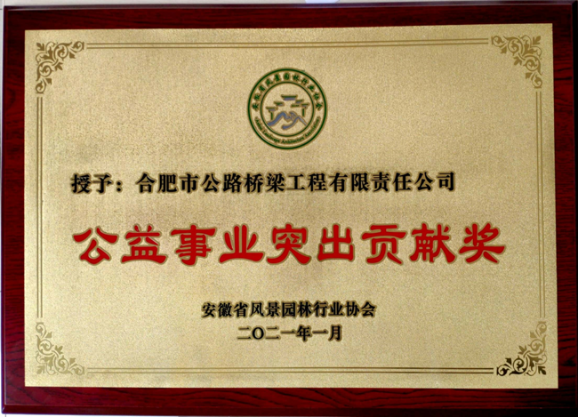 日前,从安徽省风景园林行业协会获悉,合肥路桥公司荣获“公益事业突出贡献奖”。