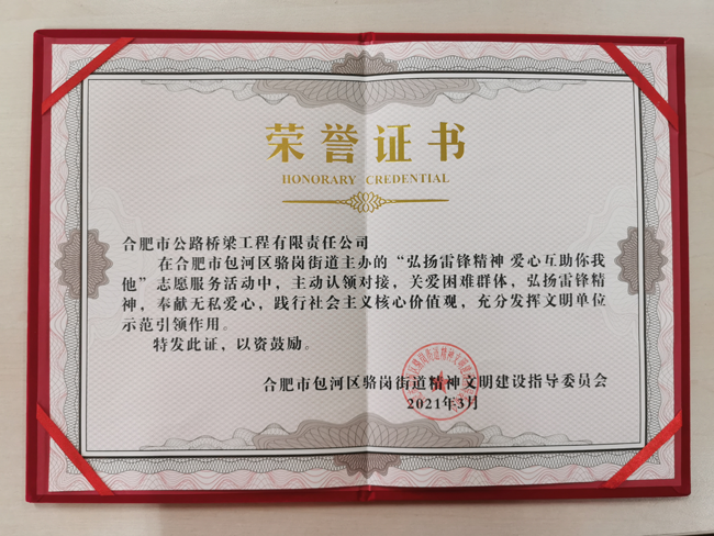 3月5日,合肥路桥积极参与骆岗街道文明办发起的“弘扬雷锋精神,爱心互助你我他”主题的公益活动,认领微心愿,帮助受助者实现小小心愿。