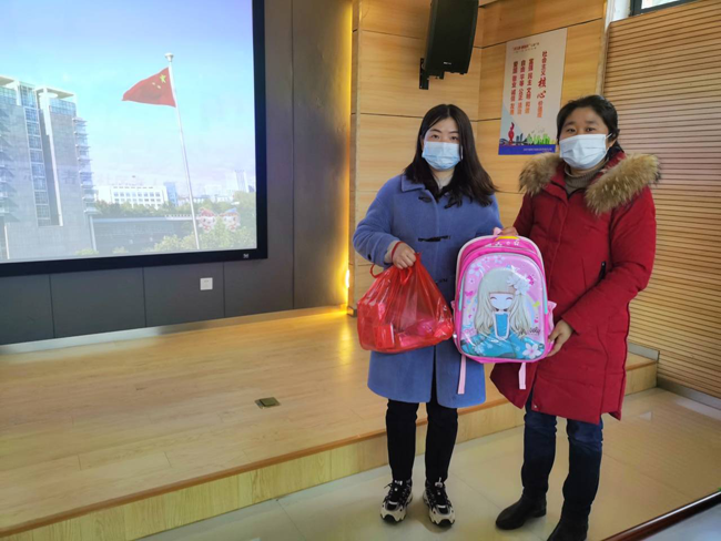 在活动中,合肥路桥公司为高王社区的吴梦瑶小朋友送去了新书包和日常学习用品。吴梦瑶小朋友父亲在工作中摔伤,生活不能自理,主要靠政府救济和亲人帮扶。