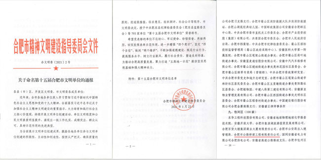 近日,合肥路桥公司被合肥市精神文明建设指导委员会授予第十五届“合肥市文明单位”荣誉称号,这也是公司连续五届获此殊荣。