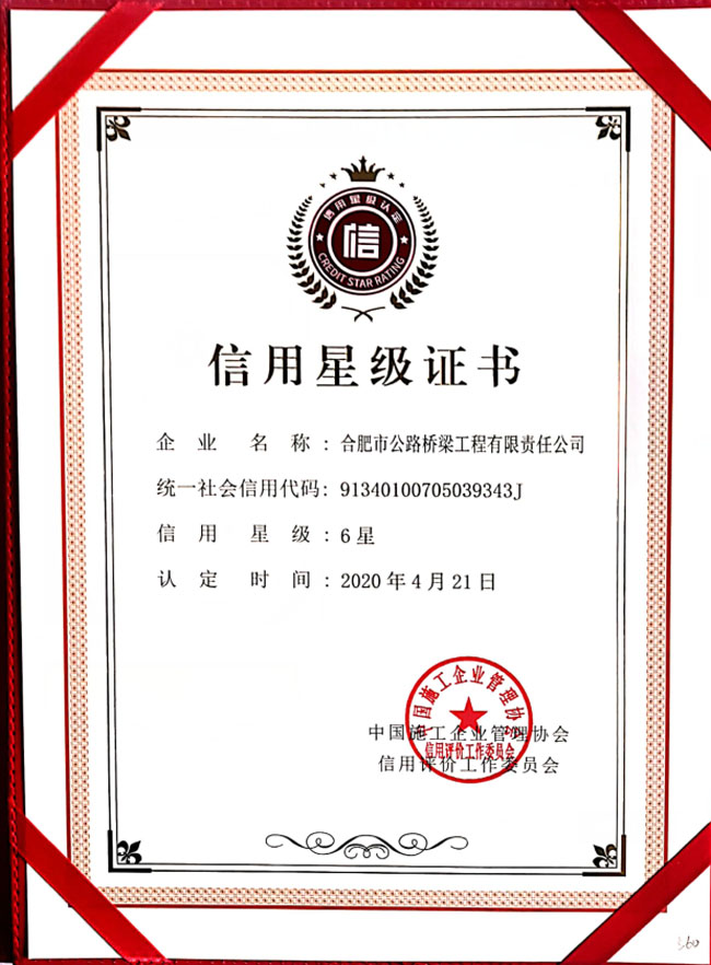近日,2020年度工程建设诚信企业推介大会在广西南宁举行,合肥路桥公司凭借雄厚的综合实力再获全国工程建设诚信典型企业及工程建设企业信用评价AAA级企业称号,同时获评6星级信用证书。