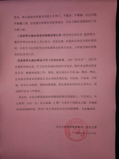 合肥路桥积极开展“防控疫情、党员先行”志愿服务活动