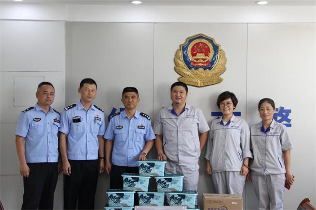 近日天气持续高温,在合肥路桥天都路改造工程项目现场,为保障施工道路交通秩序,经开区交警大队积极增添流动警力,全力维护交通秩序,确保项目建设有序开展,7月29日下午,天都路项目部精心采购了防暑降温用品慰问全体警务人员。