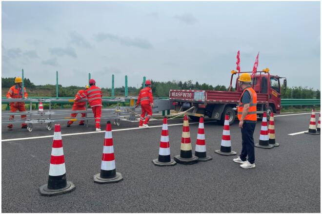 为提升高速公路安全应急处置能力,结合生产实际,明�z高速合肥段2023-2025年度日常养护项目部联合明�z高速公司、路政大队、交警大队、养护单位、施救单位等7家单位在明巢高速合肥段道路阻段中分带开口应急演练联。