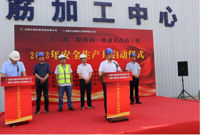 6月1日上午10时,合肥路桥G312合六路(肥西段)快速化改造工程2023年“安生产全月”顺利启动。合肥路桥支部书记、执行董事杨枫出席活动并作动员讲话,合肥交投合六项目公司董事长、总经理陈风明出席活动并宣布2023年“安全生产月”活动正式启动。