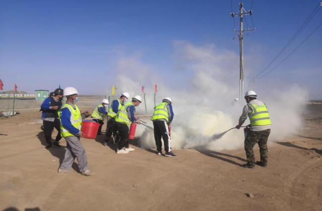 近日,新疆S327公路改扩建项目3标项目经理部在项目驻地现场开展消防应急演练,项目负责人、各部门、各班组施工人员共29人参与演练。
