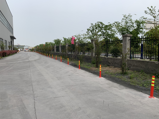 除此之外,为提高严店应急养护中心交通安全,加强养护中心员工交通安全防范意识,严店基地在行车道绿化带旁安装了警示柱,确保车辆行车安全。