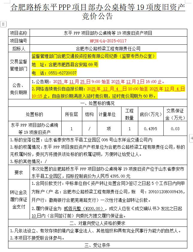 东平PPP项目部办公桌椅等19项废旧资产项目